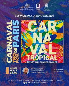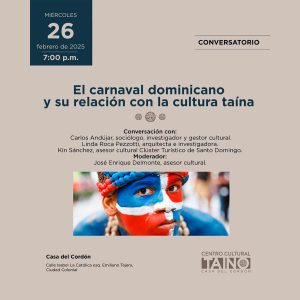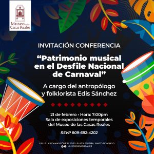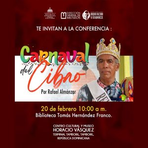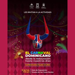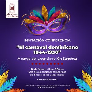 Conferencia «El carnaval dominicano 1844 – 1930» A cargo de: Licenciado Kin Sánchez Fecha: 28 de febrero Hora: 08:00 p.m. Lugar: Sala de exposiciones temporales