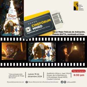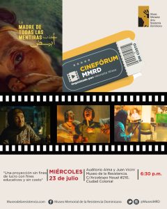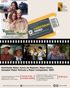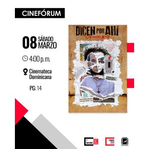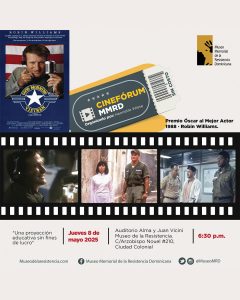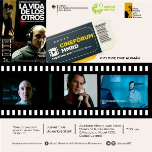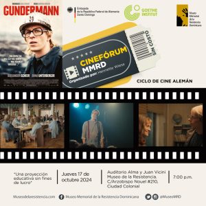 Proyección de la película dominicana «Mañana no te olvides» comentada por el actor puertoplateño Guillermo Finke, quien encarnó uno de los personajes protagónicos. Hora: 7
