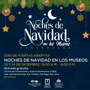 Exposición – Trayectoria de la Identidad Cultural Dominicana Fecha: 12, 13 y 14 de diciembre Información adicional Parte del evento “Noches de Navidad en los