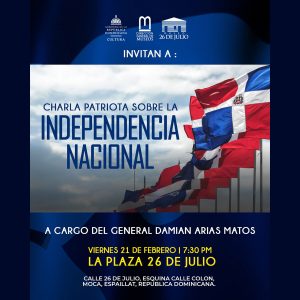 La vida de Duarte a cargo de Orlando Inoa Fecha: 25 de enero 2024 Lugar: Centro Cultural y Museo Horacio Vásquez. Calle Real José Rafael
