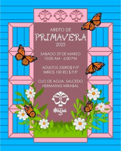 Areíto de Primavera 2026 Evento Principal Fecha: Domingo 29 de marzo de 2026 Hora: 10:00 AM – 6:00 PM Lugar: Ojo de Agua, Salcedo, Hermanas