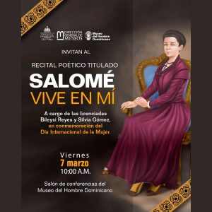 Recital poético: Salomé vive en mi», a cargo de Jean Marie Perdomo Hora: 4:00 p.m. a 5:00 p.m.