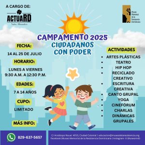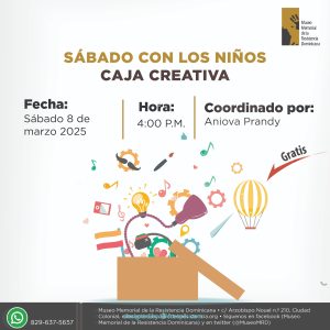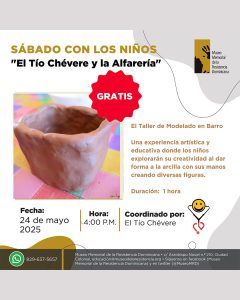 Sábado con los Niños Taller Modelado en Barro Fecha: Sábado 28 de marzo 2026 Hora: 4:00 PM Lugar: Museo Memorial de la Resistencia Dominicana. C/Arzobispo