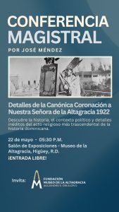 Coronación de la Virgen de la Altagracia en 1922: Anécdotas y datos inéditos Conferencia con el investigador histórico José Méndez Fecha: Jueves 22 de enero