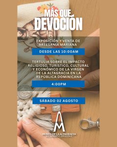 Exposición La Virgen de la Altagracia Protectora del Pueblo Dominicano Fecha: Del 21 de enero al 19 de febrero 2026 Hora: De martes a domingo