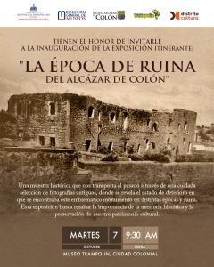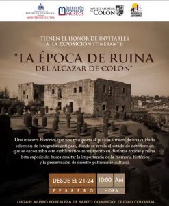 LA ÉPOCA DE RUINA DEL ALCÁZAR DE COLÓN Exposición Itinerante Fecha: Desde el 21 al 24 de febrero Hora: 10:00 a.m. Lugar: Museo Fortaleza de