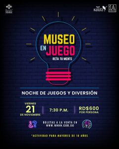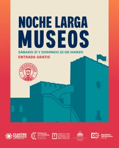 Noche Larga de Museos Turizoneando Fecha: Sábado 21 y Domingo 22 de marzo Hora: Consultar programación Lugar: Museos participantes, Ciudad Colonial Información adicional ENTRADA GRATIS.