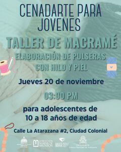 Taller de Cerámica – CENADARTE PARA JÓVENES Un taller práctico dirigido por artesanos especializados Fecha: Viernes 12 de diciembre Hora: 03:00 PM Lugar: Calle La