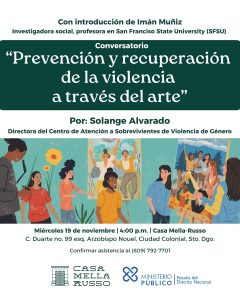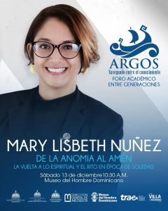 ARGOS – Foro Académico: Mary Lisbeth Nuñez De la Anomia al Amén Fecha: Sábado 13 de diciembre Hora: 10:30 A.M. Lugar: Museo del Hombre Dominicano