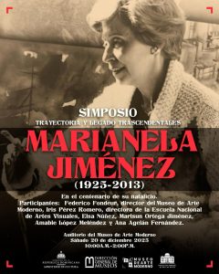 Simposio: Marianela Jiménez (1925–2013) Trayectoria y legado trascendentales Fecha: Sábado 20 de diciembre de 2025 Hora: 10:00 a. m. – 2:00 p. m. Lugar: Auditorio