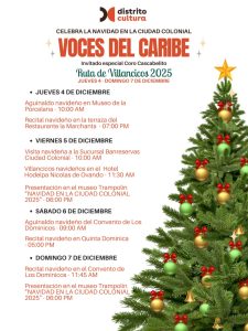 Ruta de Villancicos 2025 Celebración navideña con arte y tradición en espacios culturales de la Ciudad Colonial Voces del Caribe Fecha: Viernes 12 de diciembre