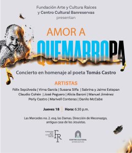 Amor a Quemarropa – Concierto en Homenaje a Tomás Castro Concierto en homenaje al poeta Tomás Castro Fecha: Jueves 18 Hora: 6:30 p. m. Lugar: