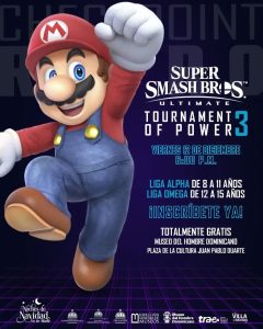 Super Smash Bros. Ultimate – Tournament of Power 3 Fecha: Viernes 12 de diciembre Hora: 6:00 P.M. Lugar: Museo del Hombre Dominicano – Plaza de