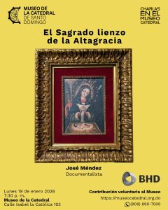 El Sagrado lienzo de la Altagracia Charlas en el Museo Catedral Fecha: Lunes 19 de enero 2026 Hora: 7:30 p. m. Lugar: Museo de la