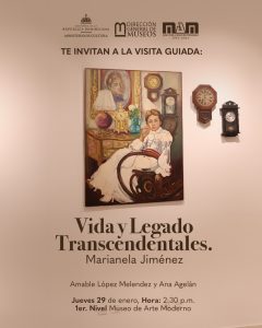 Vida y Legado Trascendentales. Marianela Jiménez Fecha: Jueves 29 de enero Hora: 2:30 p.m. Lugar: 1er. Nivel, Museo de Arte Moderno Información adicional Visita guiada
