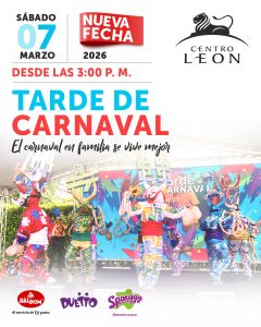 Tarde de Carnaval El carnaval en familia se vive mejor Fecha: Sábado 07 de marzo 2026 Hora: Desde las 3:00 P. M. Lugar: Centro León