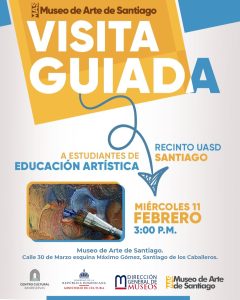 VISITA GUIADA A estudiantes de Educación Artística Fecha: Miércoles 11 de febrero Hora: 3:00 P.M. Lugar: Museo de Arte de Santiago (Recinto UASD Santiago) Información