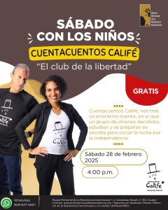 SÁBADO CON LOS NIÑOS CUENTACUENTOS CALIFÉ «El club de la libertad» Fecha: Sábado 28 de febrero 2025 Hora: 4:00 p.m. Lugar: Museo Memorial de la