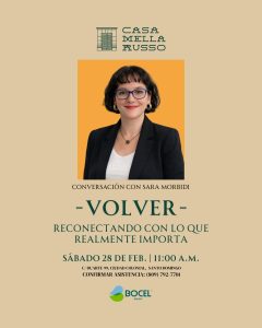 VOLVER – RECONECTANDO CON LO QUE REALMENTE IMPORTA Conversación con Sara Morbidi Fecha: Sábado 28 de feb. Hora: 11:00 a.m. Lugar: C/ Duarte 99, Ciudad