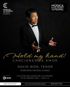¡HOLD MY HAND! CANCIONES DE AMOR Música en el Museo Catedral Fecha: 26 de febrero, 2025 Hora: 8:00 p.m. Lugar: Claustro del Museo de la