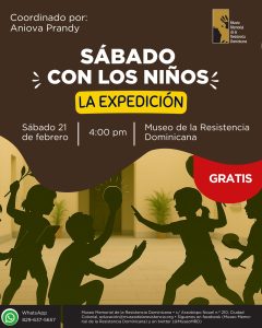 Sábado con los Niños: La Expedición Actividad educativa para niños Fecha: Sábado 21 de febrero Hora: 4:00 pm Lugar: Museo de la Resistencia Dominicana Información