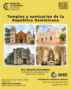 Templos y santuarios de la República Dominicana Documentales en el Museo Catedral Fecha: Miércoles 25 de febrero 2026 Hora: 7:30 p. m. Lugar: Museo de