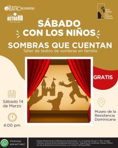 Sábado con los niños: Sombras que cuentan Taller de teatro de sombras en familia Fecha: Sábado 14 de marzo Hora: 4:00 p.m. Lugar: Museo de