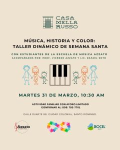 Música, Historia y Color: Taller Dinámico de Semana Santa Con estudiantes de la Escuela de Música Azzato Fecha: Martes 31 de marzo Hora: 10:30 AM