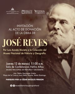 INVITACIÓN AL ACTO DE DONACIÓN DE LA OBRA DE JOSÉ REYES Fecha: Jueves 12 de marzo Hora: 11:00 a.m. Lugar: Sala de Conferencias Vetilio Alfau,