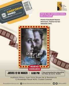 Cinefórum MMRD: La mujer que sabía leer Por el Día Internacional de la Mujer Fecha: Jueves 12 de marzo Hora: 6:00 p.m. Lugar: Auditorio Alma