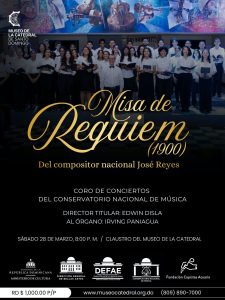 Misa de Requiem (1900) Del compositor nacional José Reyes Fecha: Sábado 28 de marzo Hora: 8:00 p.m. Lugar: Claustro del Museo de la Catedral Información
