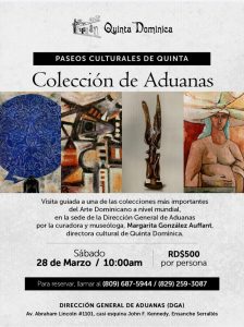 Colección de Aduanas Paseos Culturales de Quinta (Visita guiada) Fecha: Sábado 28 de marzo Hora: 10:00 A. M. Lugar: Dirección General de Aduanas (DGA), Av.
