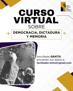 Curso Virtual sobre Democracia, Dictadura y Memoria Inscripciones abiertas Fecha: Inicia el viernes 3 de abril Hora: A tu ritmo (Modalidad virtual) Lugar: Virtual Información