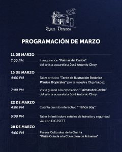 PROGRAMACIÓN DE MARZO Quinta Dominica Fecha: Marzo (varias fechas) Hora: Varias horas según actividad Lugar: Quinta Dominica Información adicional 11 de marzo — 7:00 PM:
