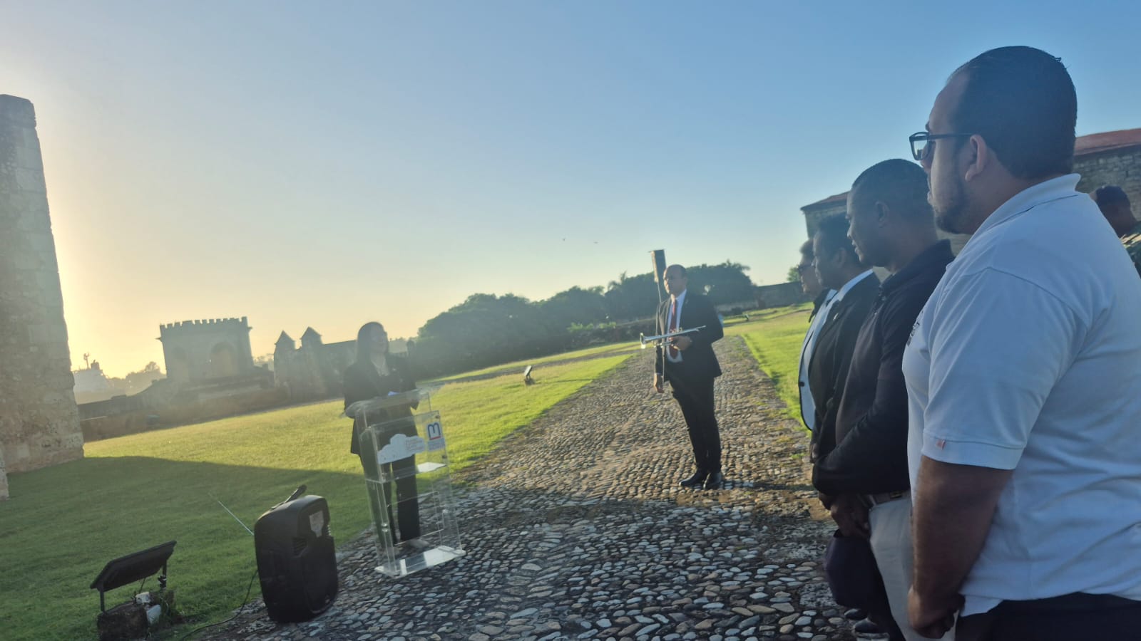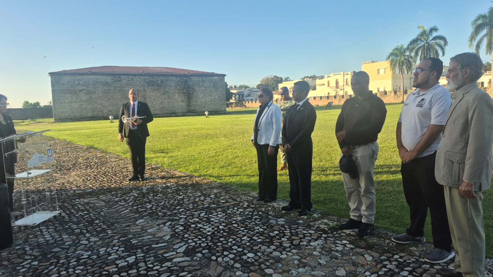 La directora del Museo Fortaleza Santo Domingo, Arq. Ana Cristina Martínez Guzmán, destacó la importancia histórica de la Fortaleza de Santo Domingo, destacando que allí se desplegó la primera bandera nacional, símbolo de independencia y soberanía. En su discurso durante el acto de izamiento de la bandera, rindió homenaje a Juan Pablo Duarte, recordando su papel crucial en la lucha por la libertad y exhortó a todos a honrar su legado. Finalizó con un emotivo llamado, proclamando «¡Viva Juan Pablo Duarte, Viva la República Dominicana!».