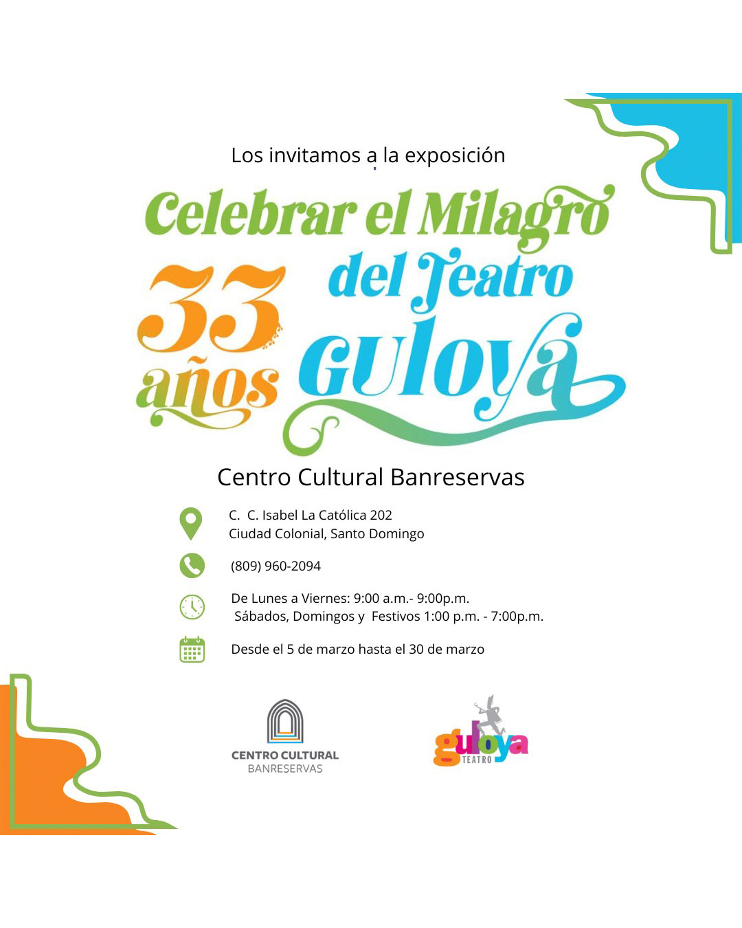 • Lugar: Centro Cultural Banreservas, C. C. Isabel La Católica 202, Ciudad Colonial, Santo Domingo