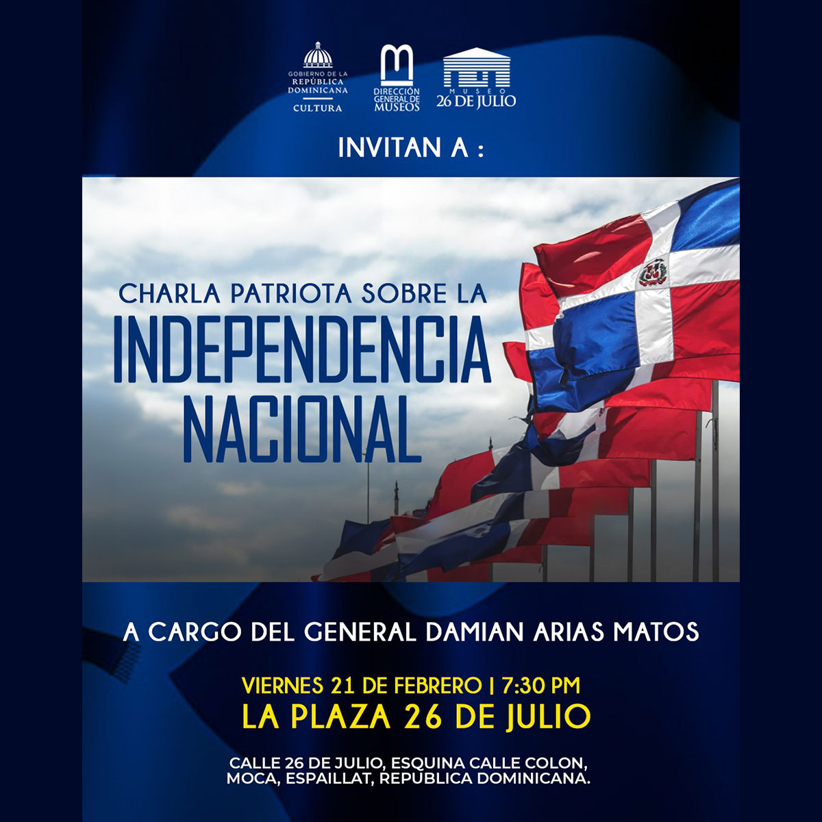 • Lugar: La Plaza 26 de Julio, Calle 26 de Julio, esquina Calle Colón, Moca, Espaillat, República Dominicana.