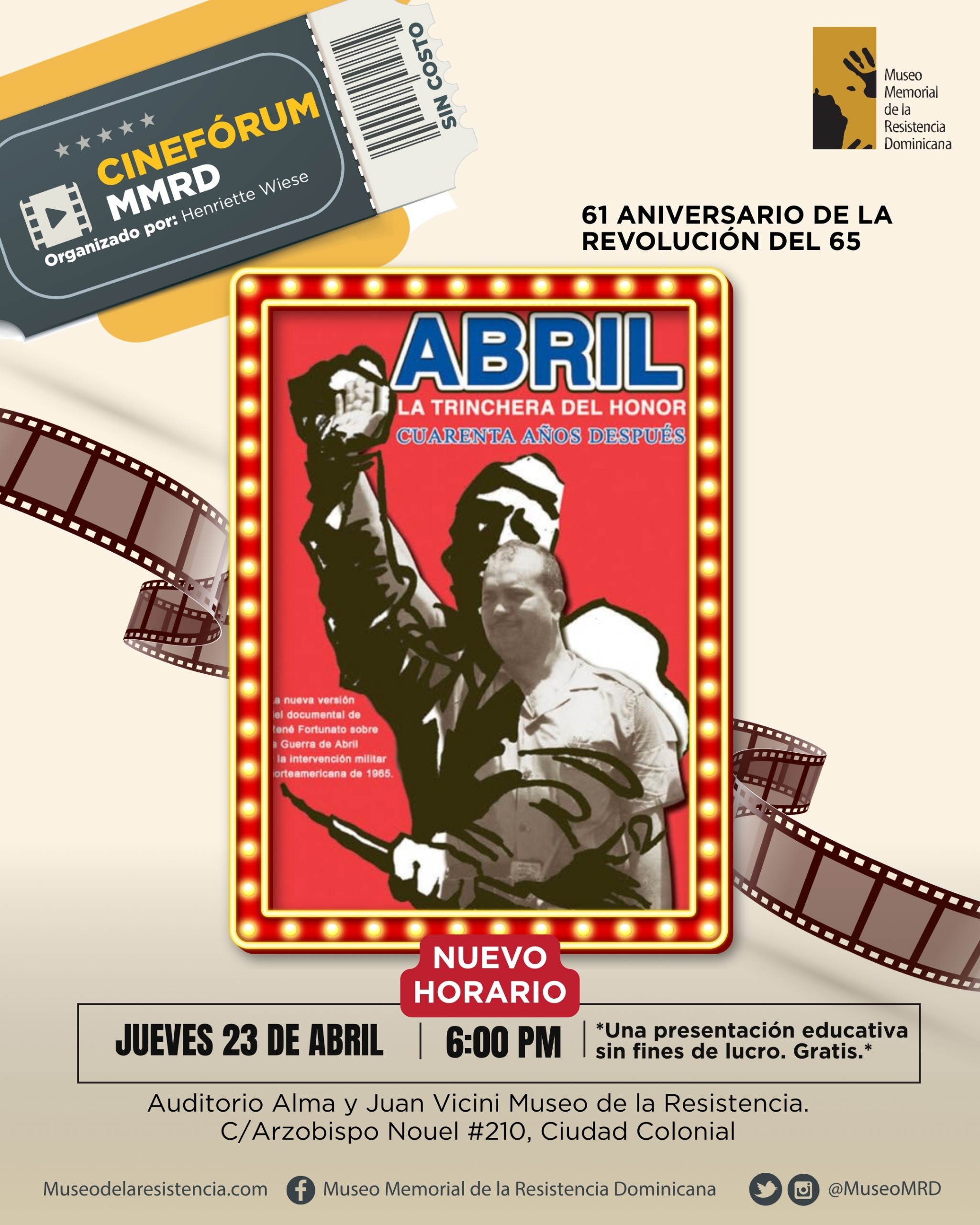 • Lugar: Auditorio Alma y Juan Vicini, Museo de la Resistencia, C/ Arzobispo Nouel #210, Ciudad Colonial
