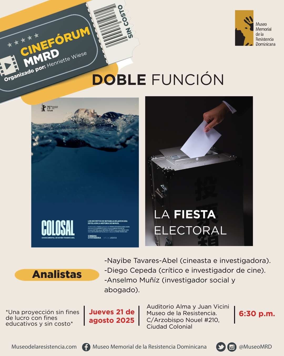 • Lugar: Auditorio Alma y Juan Vicini, Museo de la Resistencia, C/Arzobispo Nouel #210, Ciudad Colonial