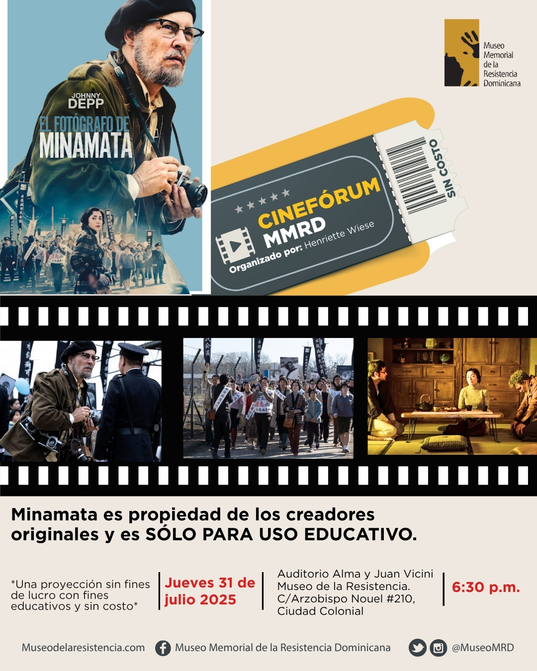 • Lugar: Auditorio Alma y Juan Vicini, Museo de la Resistencia, C/Arzobispo Nouel #210, Ciudad Colonial.
