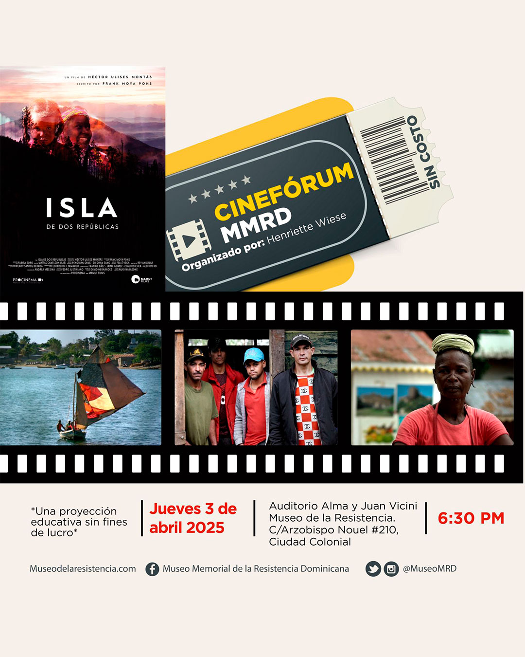 • Lugar: Auditorio Alma y Juan Vicini, Museo de la Resistencia. C/Arzobispo Nouel #210, Ciudad Colonial