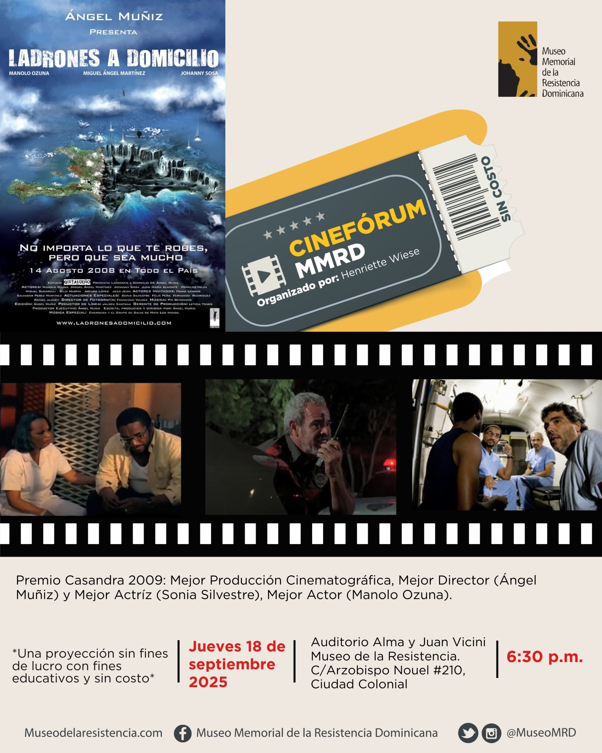 • Lugar: Auditorio Alma y Juan Vicini, Museo de la Resistencia. C/Arzobispo Nouel #210, Ciudad Colonial.