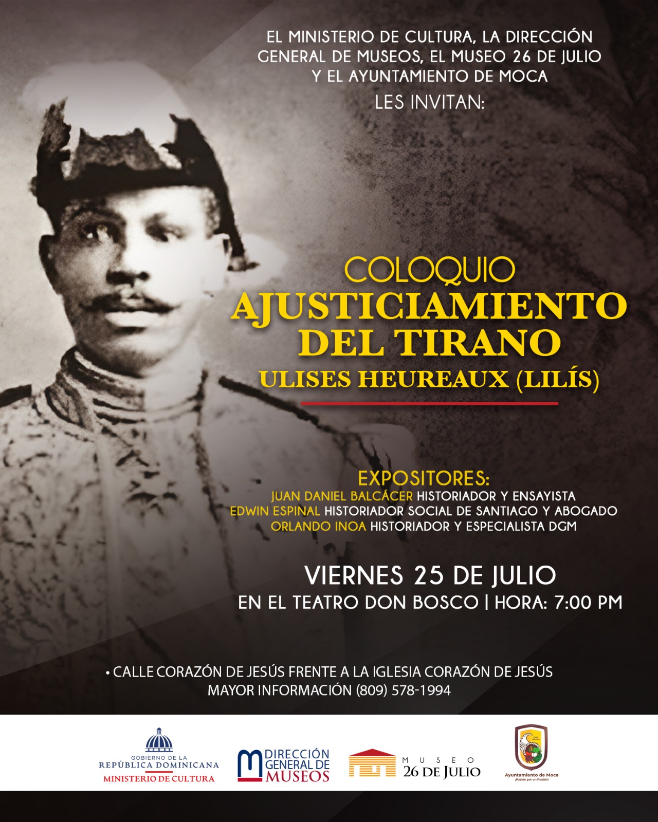 • Organizan: Ministerio de Cultura, Dirección General de Museos, Museo 26 de Julio y el Ayuntamiento de Moca