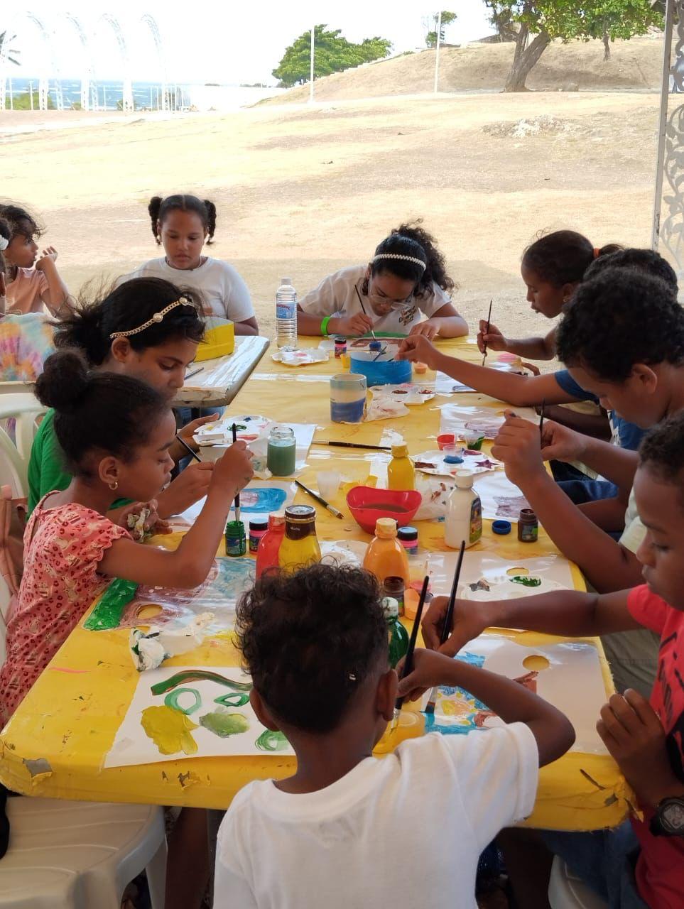 Masterclass de pintura impartido por el artista Adolfo Faringthon, dirigido a niños, niñas y adolescentes provenientes de escuelas de arte ubicadas en comunidades vulnerables de la provincia de puerto plata.