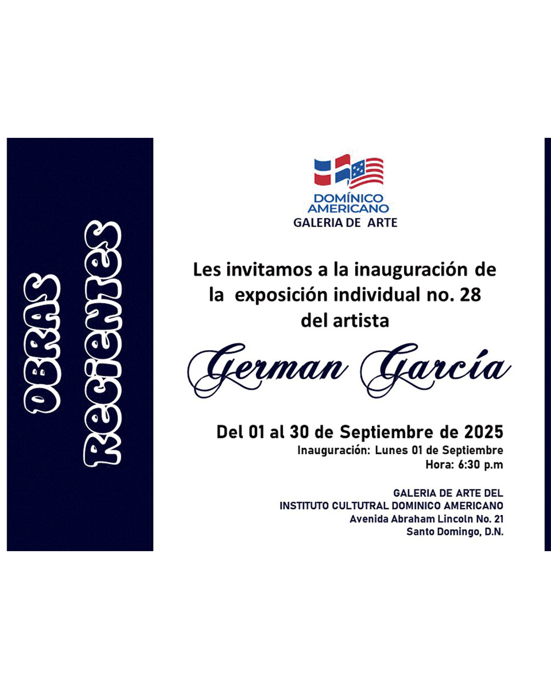 • Lugar: Galería de Arte del Instituto Cultural Domínico Americano, Avenida Abraham Lincoln No. 21, Santo Domingo, D.N.