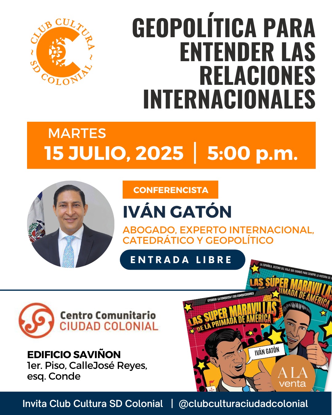 • Lugar: Edificio Saviñón, 1er. Piso, Calle José Reyes, Esq. Conde