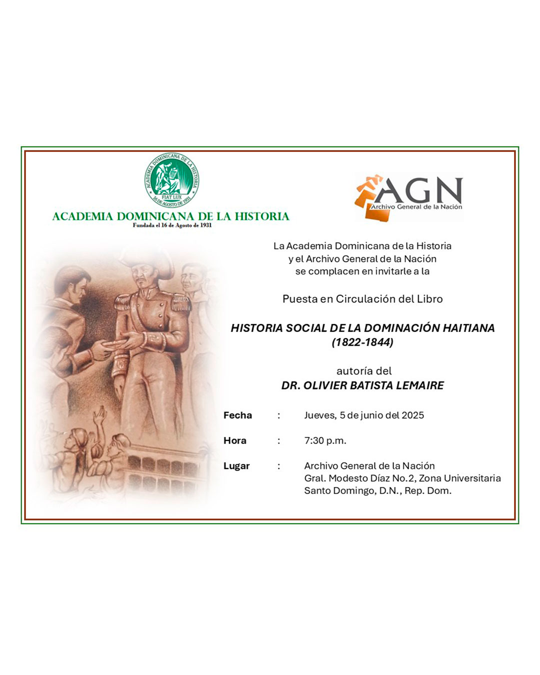 • Lugar: Archivo General de la Nación, Gral. Modesto Díaz No. 2, Zona Universitaria, Santo Domingo, D.N., Rep. Dom.
