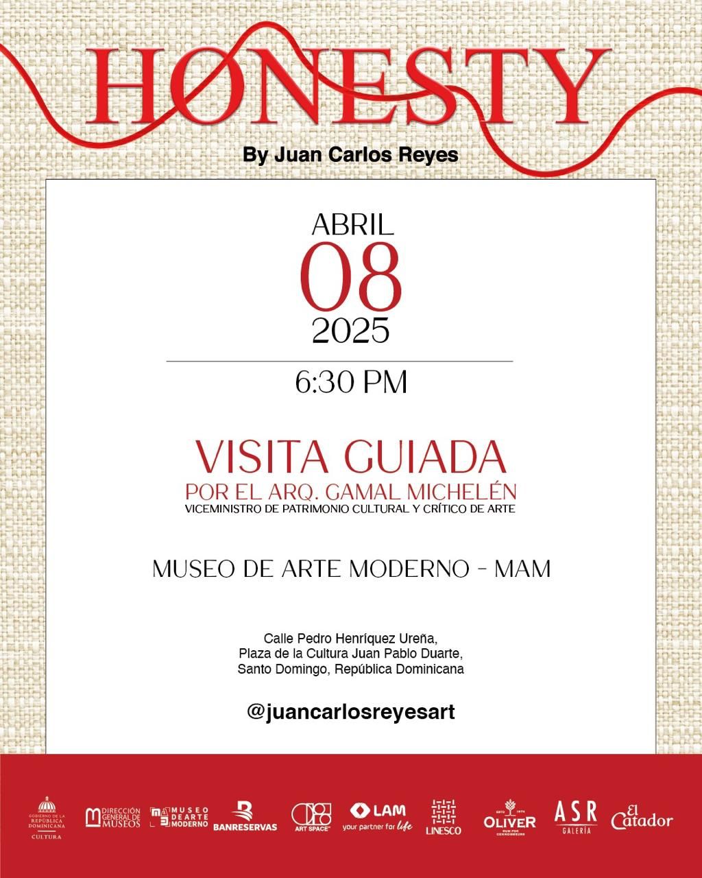 • Lugar: Museo de Arte Moderno – MAM, Calle Pedro Henríquez Ureña, Plaza de la Cultura Juan Pablo Duarte, Santo Domingo, República Dominicana