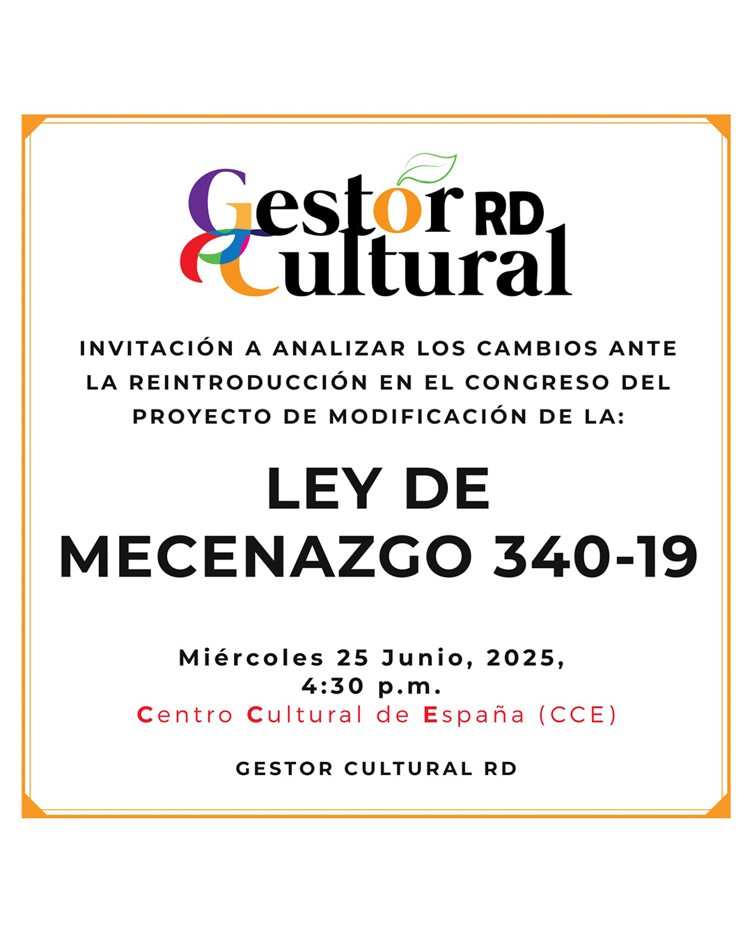 Invitación a analizar los cambios ante la reintroducción en el congreso del proyecto de modificación de la: Ley de Mecenazgo 340-19