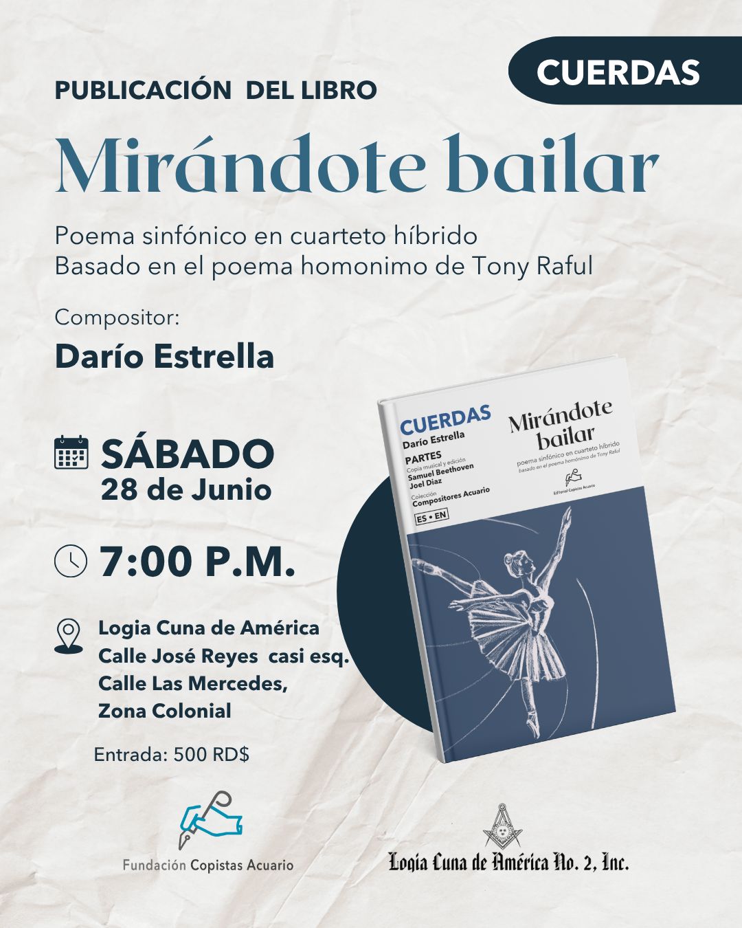 • Organizan: Fundación Copistas Acuario, Logia Cuna de América No. 2, Inc.